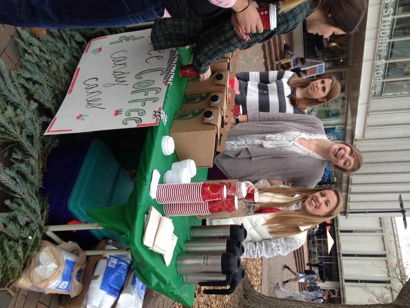 Cru students handed out free candy canes and coffee and offered to pray for stressed out students